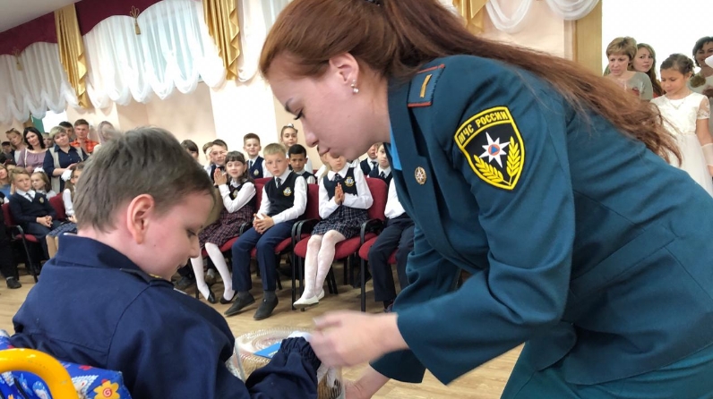This year Roman Semenov finished primary school. Employees of the Department of personnel and educational work of the 8th squad of the Federal fire service became guests of honor at the graduation party of his assistant.