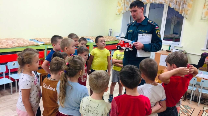 Preschool children of kindergarten No. 14 of Chistopol with interest looked at the guest in the form of the Ministry of emergency situations when the teacher presented him to them. Guzman Gatin, Deputy head of the Department of supervision and preventive work in The Chistopol municipal district, came to the children to talk about how dangerous playing with fire is.