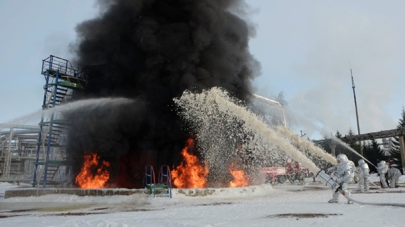 According to the tactical plan of the exercise, when conducting fire-hazardous works by the organization of LLC "Chem-Pribor" for washing out bottom sediments, there was a cotton of steam-air mixture inside a vertical steel tank with a volume of 1000 cubic meters, followed by a fire and the release of burning oil in the collapse of the tank.