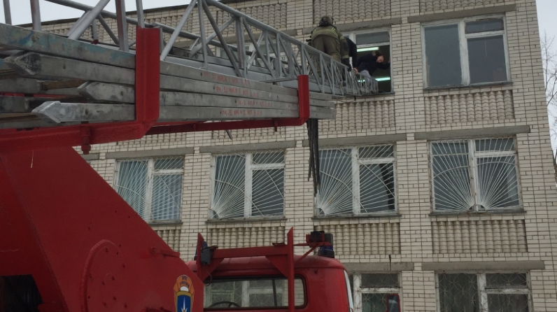 According to the plan of the exercise, as a result of a short circuit of the electrical wiring, there was a fire in the computer science office on the second floor. There was a strong smoke in the corridor of the second and third floors, on the flight of stairs. The duty watchman reports to the fire Department, turns on the fire alarm sound. Teachers and school employees, hearing a sound signal, open emergency exits, immediately begin to evacuate students.