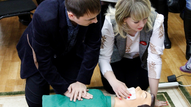 After listening to the theoretical part, the heads of the district MCU civil protection departments began to consolidate their knowledge in practice. First of all, they tried to resuscitate the unconscious person by indirect heart massage and artificial lung ventilation by mouth-to-mouth breathing. "Victims" were replaced by modern simulation dummies. After that, they started practical first aid measures in the presence of injuries to the limbs and head.