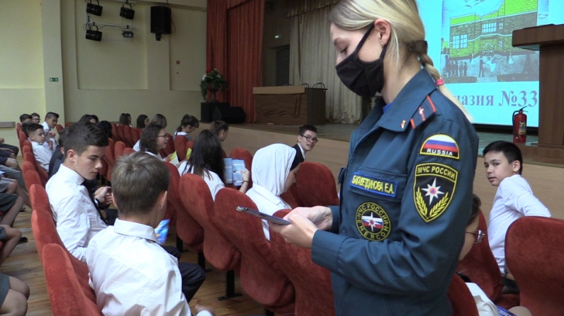 The rules for using a fire extinguisher, ways to help the person on whom the clothes caught fire, as well as providing pre-medical care for burns - students of Kazan school No. 33 learned about all this today during a training session conducted for them by employees of the department of supervisory activities and preventive work in the Aircraft Building District of Kazan. An educational lesson was held at school as part of Child Safety Month.