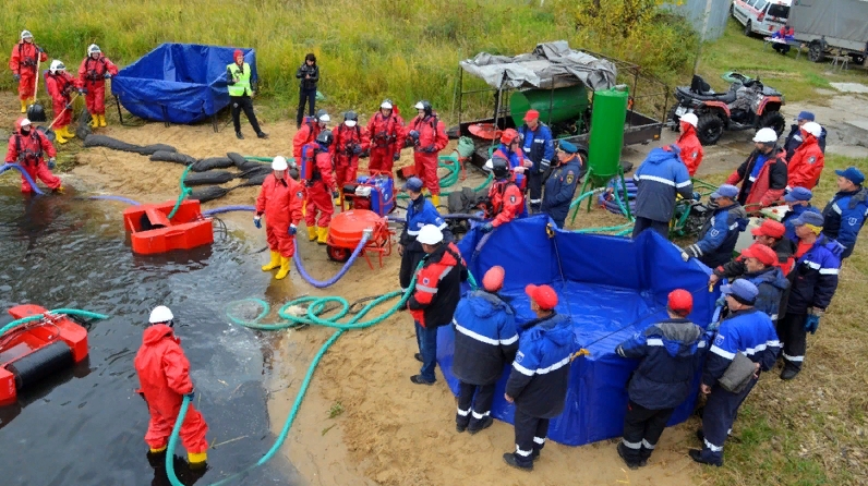 According to the legend of the exercise, " ... as a result of depressurization of the technological pipeline during loading of the bunkering truck, diesel fuel spilled in the amount of 6 tons into the Volga river Bay...". Immediately, all emergency services were notified, and members of the Commission for emergency situations and fire safety of the zmr were gathered. Firefighters, police, ambulance, emergency crews of the water utility, power grids arrived at the scene, and a mobile food service station was organized.