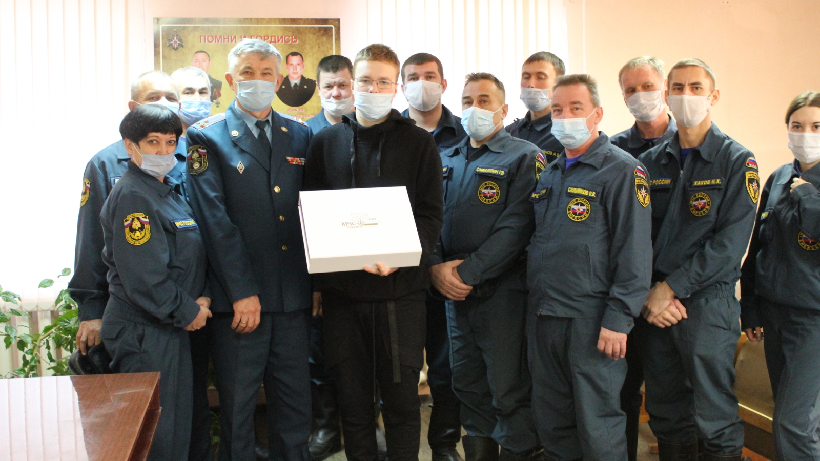 The head of the squad of FFS SFS – Naberezhnye Chelny branch of Federal state institution "Management of contractual divisions of FFS SFS in the Republic of Tatarstan" was awarded to Vladislav Ryzhov a gift from the head of EMERCOM of Russia Evgeny Senichev, and on the facade of 18 pieces of firefighting and rescue under the sound of sirens the fire trucks the staff honored the memory of officers killed in the line of duty.