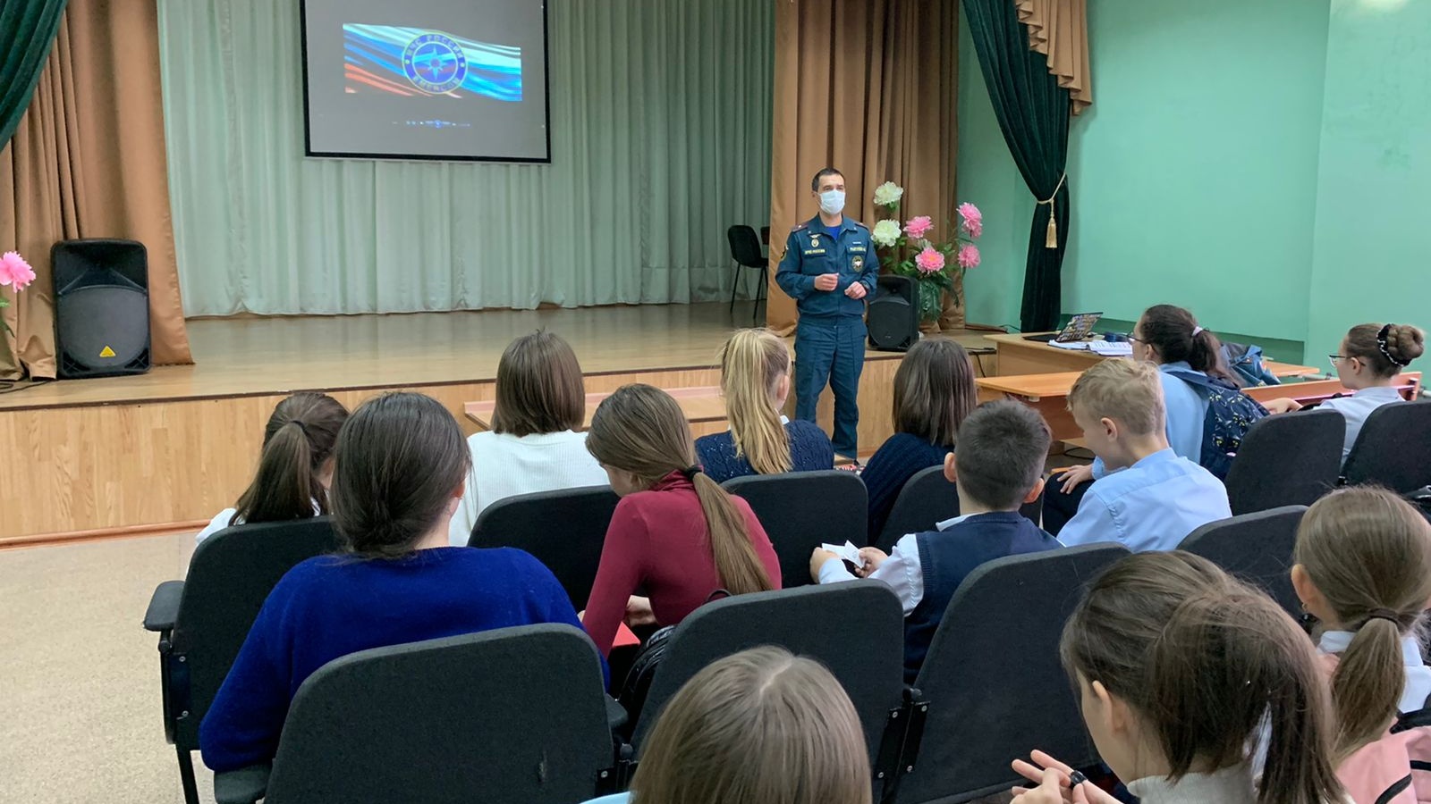 After the autumn holidays, the employees of the Ministry of Emergency Situations came to visit the schoolchildren of the Vysokogorsk district of the republic to remind the rules of safe behavior and prevent fires due to a child's prank with fire. Inspectors of the federal state fire supervision, having gathered students of grades 1,5,6 in the assembly hall of the school, began their training session with a quiz.