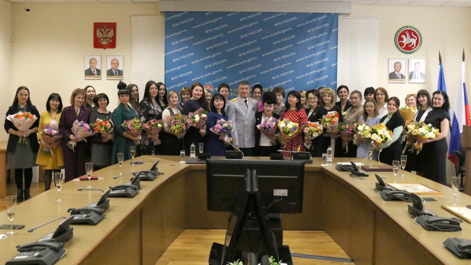 The Head of the Main Department of the EMERCOM of Russia in the Republic of Tatarstan, Lieutenant General of the Internal Service Rafis Khabibullin, congratulated the employees of the Tatarstan Central Board of the Federal Department and the Ministry of Civil Defense and Emergency Situations of the Republic of Tatarstan on the upcoming International Women's Day on March 8.