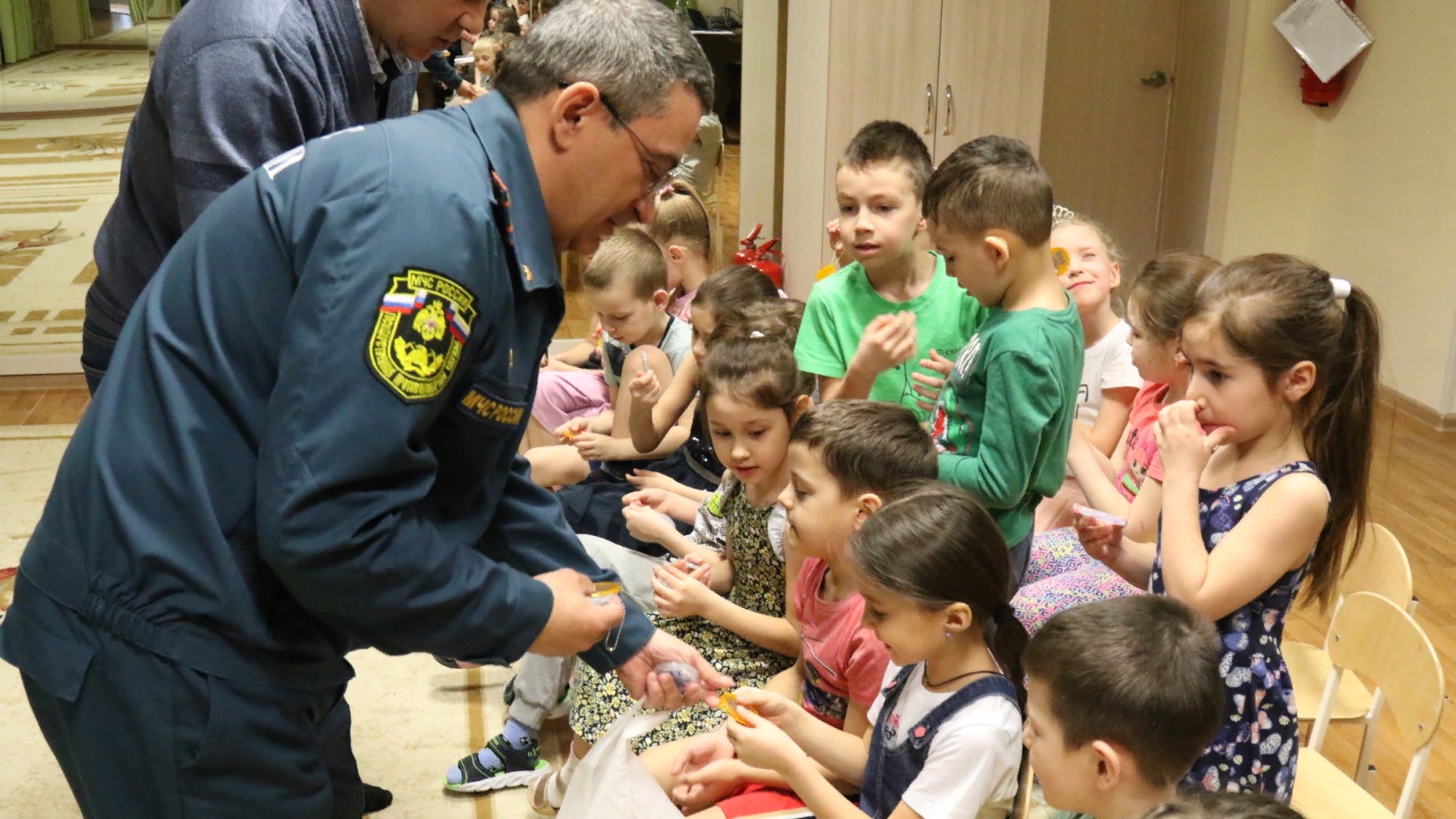 The children looked with interest at the cartoon on fire-fighting topics, repeated the rules of fire safety, solved riddles and answered the questions of the guests in uniform. At the end of the event, gifts and memos were distributed to the children.