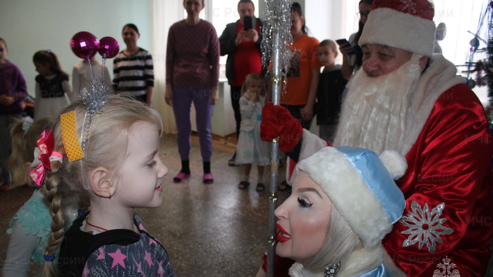 The most cherished and beloved children's holiday took place today among children from families of internally displaced persons from Donbass, who have been housed in the Kazan sanatorium "Livadia" since February 2022. And the staff of the Educational and Methodological Center for Civil Defense and Emergency Situations of the Republic of Tatarstan arranged a joyful event for the children. Grandfather Frost came to visit the kids and presented everyone with gifts – a soft toy and a whole bag of sweet prizes, including tangerines.