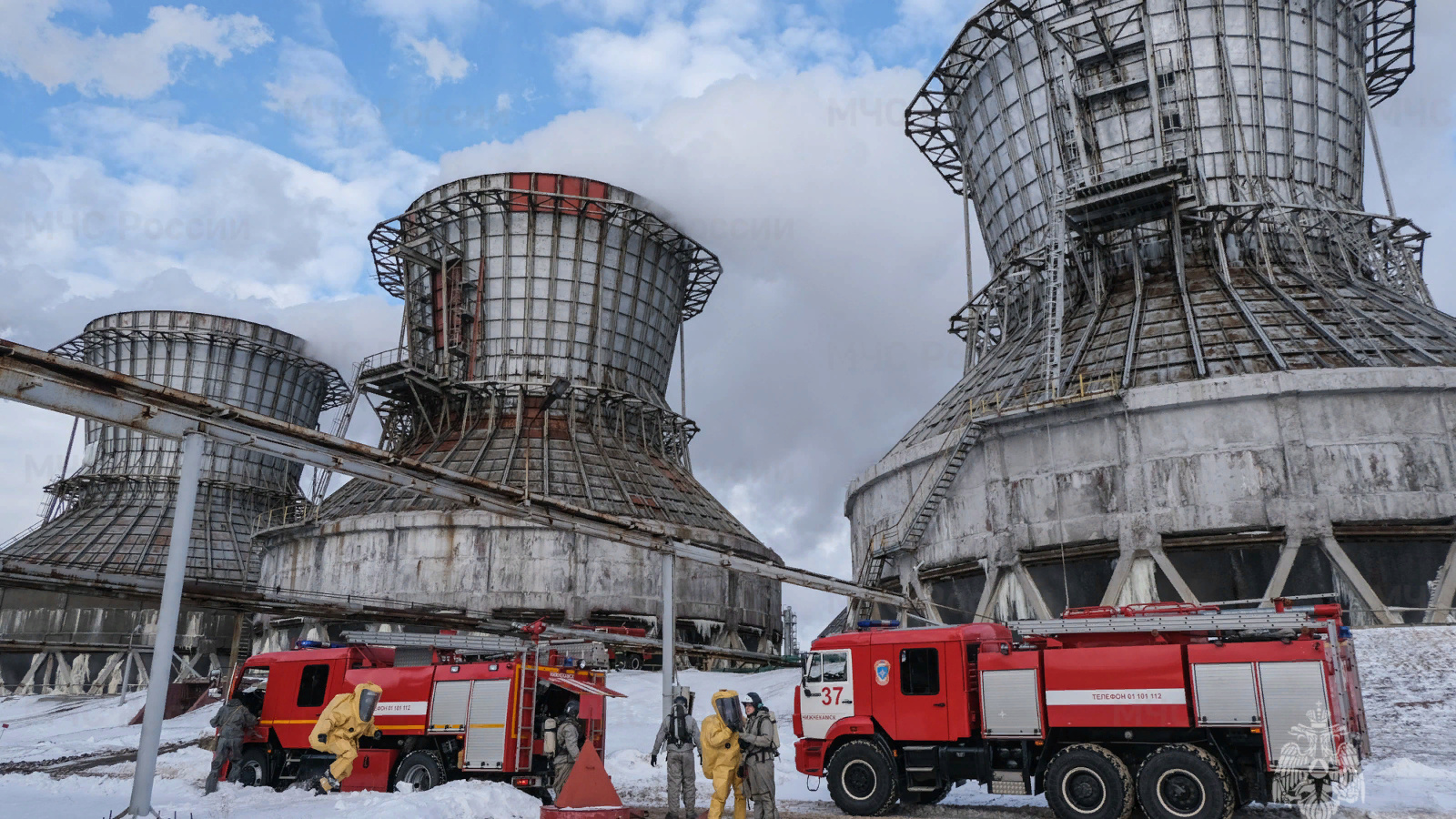 Scheduled training sessions were held on the territory of the plant in early February. According to the scenario of the exercise, as a result of the depressurization of the equipment, a leak of liquid substance under pressure occurred. The substance filled the room, and its evaporation led to chemical contamination of the workshop area. Taking into account the harmfulness of the substance, its ability to cause suffocation and burns, the combat work of the units was carried out with the use of respiratory protection and chemical protection suits.