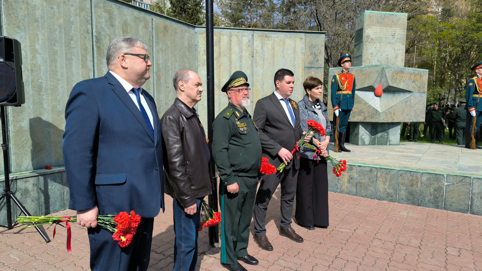A minute of silence was observed in memory of those who died and died as a result of the Chernobyl accident. The guard of honor laid a basket of red roses at the foot of the memorial.