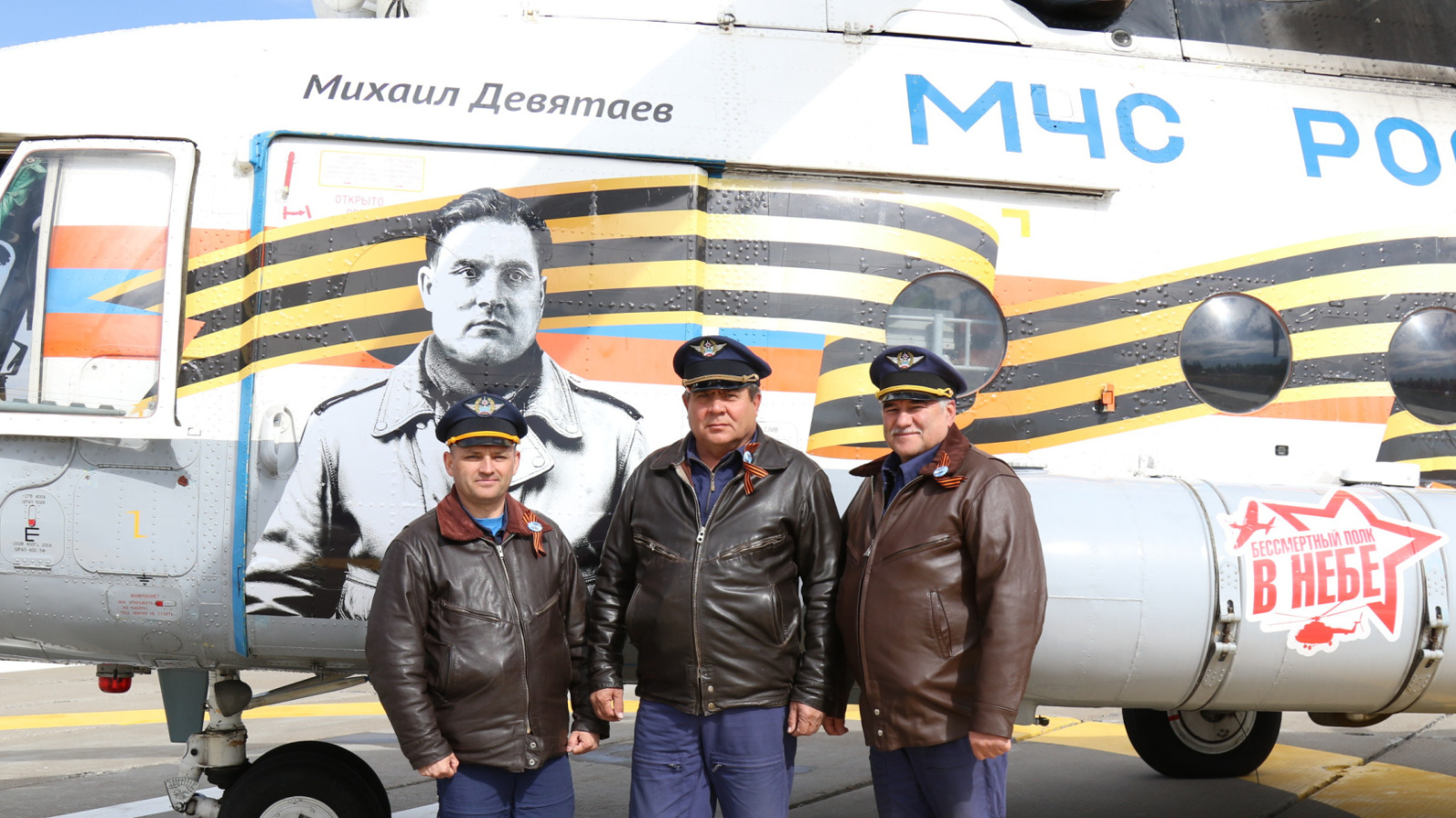 For the first time, in honor of the 80th anniversary of the Great Victory, a helicopter with a portrait of Hero of the Soviet Union Mikhail Devyataev took off into the Kazan sky. The portrait of Mikhail Petrovich and the St. George ribbon were placed on board a helicopter of the Russian Ministry of Emergency Situations. In full dress, the aircraft flew over the capital of Tatarstan as part of the unique campaign "Immortal Regiment in the Sky".