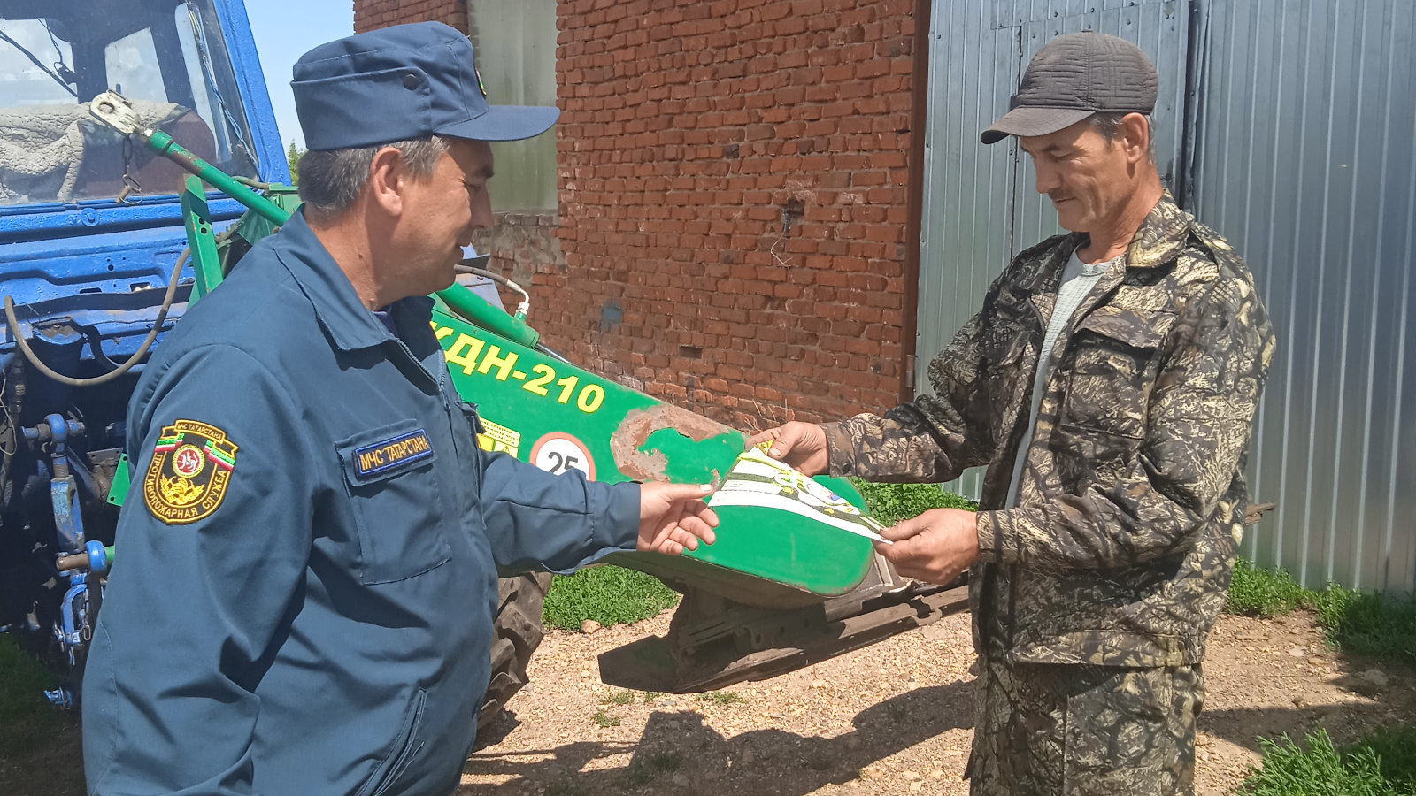 In order to prevent fires during agricultural work, employees of a separate post for the protection of the village of Kornoukhovo of the Chistopol detachment of the fire service of the Republic of Tatarstan held a preventive conversation with the machine operators of the agricultural firm "Zyuzino" of the Rybno-Slobodsky municipal district on fire safety during work during haymaking.