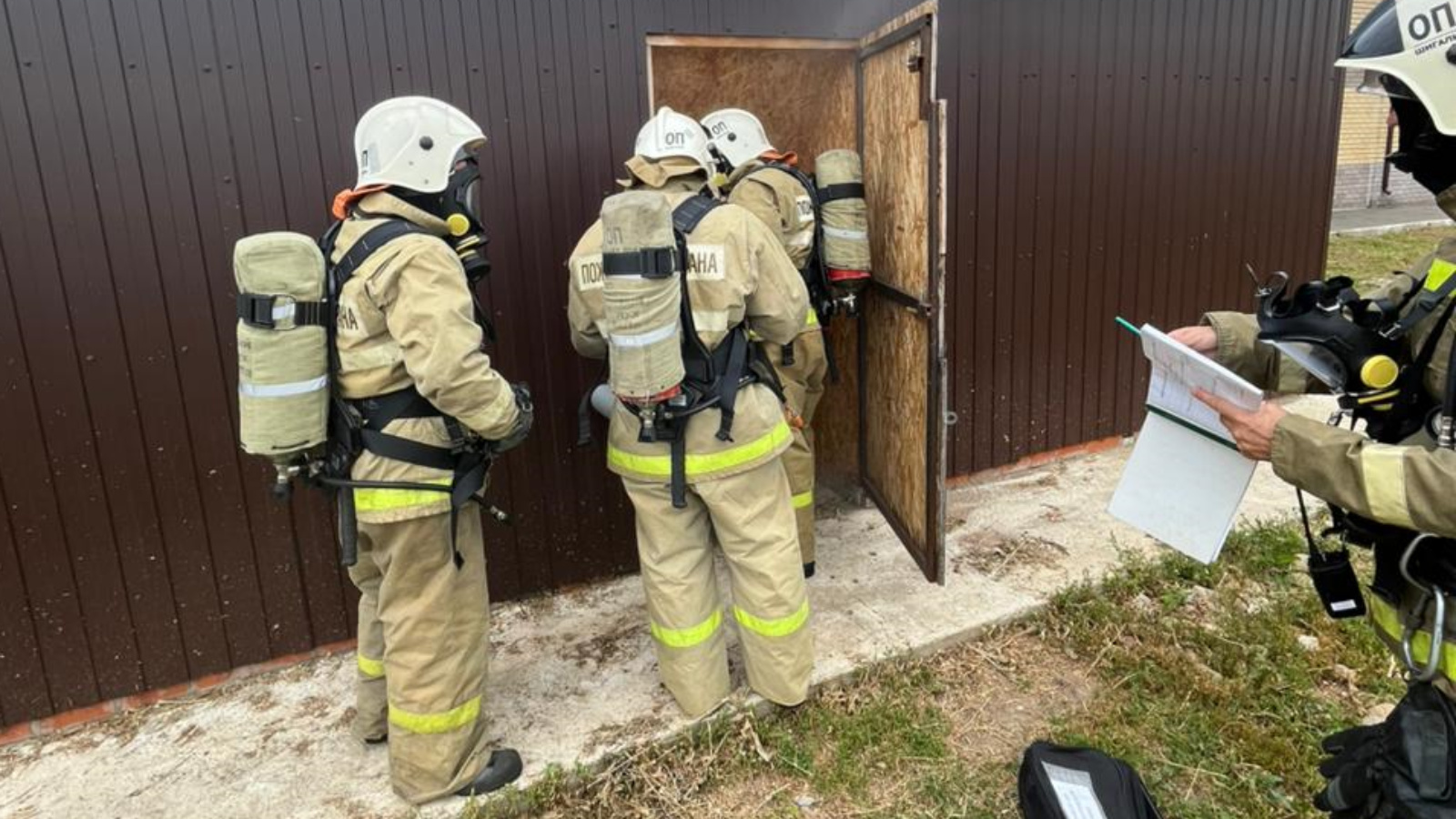 Conditions were created for the members of the gas and smoke protection service with a complete lack of visibility by closing masks. The unit was tasked with finding a dummy in the cell and evacuating it to fresh air.