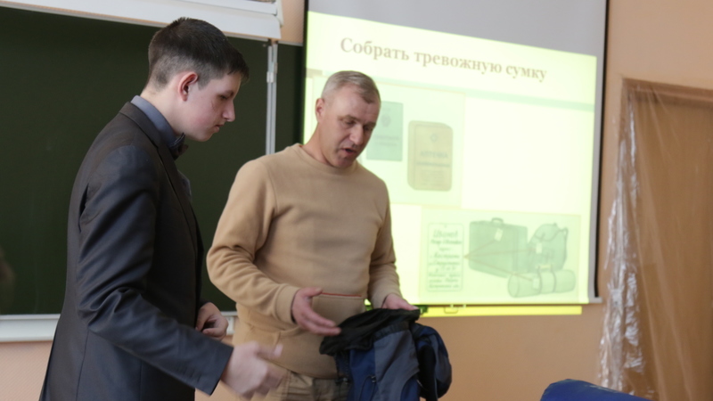 Преподаватель из Буинской школы в ходе показательного урока попытался донести до детей правила поведения и эвакуации в случае ЧС, в данном случае в условиях радиационного заражения. Ребята на уроке проводили герметизацию окон и дверей, заклеивая все щели в оконных и дверных проемах пленкой и скотчем. Затем практиковались собирать в рюкзак все необходимое в случае эвакуации из зараженной зоны по сигналу оповещения.
