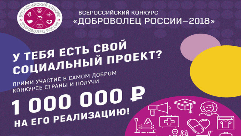 Всероссийский конкурс «Доброволец России - 2018» – социальный лифт для волонтеров, который входит в платформу "Россия – страна возможностей". Конкурс является ключевым событием Года добровольца (волонтера). В этом году конкурс запущен в новом формате – 12 обновленных номинаций, создана программа Акселерации - трехмесячная программа развития и обучения инициаторов самых успешных проектов. Участие в Конкурсе могут принять все – как юридические лица, так и физические, более того – возраст участников конкурса начинается с 8 лет и не ограничен верхней возрастной шкалой.
