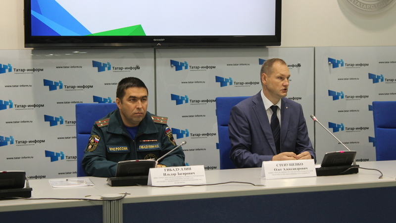 На вопросы журналистов во время брифинга, посвященного проведению месячника гражданской обороны в Республике Татарстан, отвечали врИО заместителя начальника Главного управления МЧС России по РТ (по защите, мониторингу, предупреждению ЧС) полковник Ильдар Гибадуллин и заместитель министра по делам ГО и ЧС Республики Татарстан Олег Степущенко.