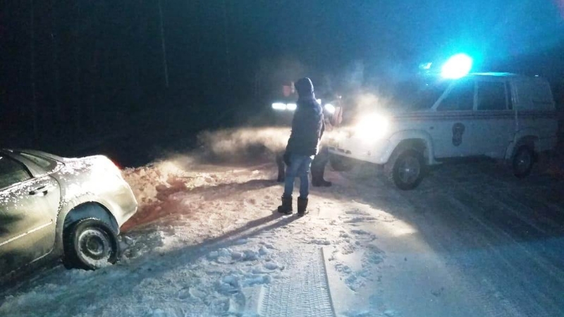 22 января в 00 ч. 15 мин. в ЗПСО №7 (г. Лениногорск), от ЕДДС Лениногорского района поступило сообщение о том, что автомобиль КИА, двигаясь по навигатору, съехал на грунтовую дорогу, где застрял в снегу. Водитель и пассажир замерзают. Требуется помощь спасателей. По прибытии на место спасатели при помощи лопат откопали автомобиль и вытолкали на проезжую часть автодороги, где они продолжили движение. 01.04- Время окончания работ.