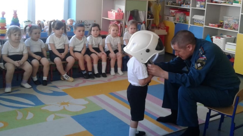 После подвижных игр дети с удовольствием просмотрели еще и обучающий мультфильм про Спасика. А потом желающие еще и примерили настоящую боевую каску пожарного. Такие познавательные встречи Камиль Ганиев проводит с детьми и в школах.
