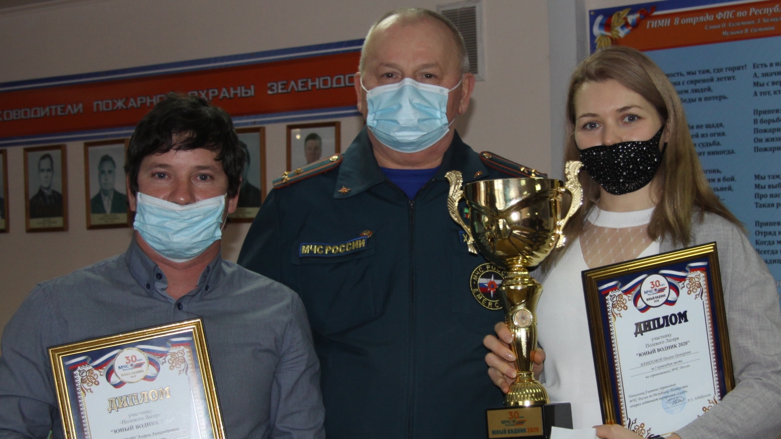 Мероприятие организовали в актовом зале 8 пожарно-спасательного отряда с соблюдением всех санитарно-эпидемиологических требований и норм безопасности. В первую очередь наградили, пожалуй, самого главного виновника торжества – тренера Далину Вавилову, которая подготовила команду зеленодольских школьников к участию во Всероссийских соревнованиях «Юный водник». Почетную грамоту от имени начальника Главного управления МЧС России по Республике Татарстан Далине Вавиловой вручил начальник Зеленодольского пожарно-спасательного гарнизона Зуфар Халиуллин.