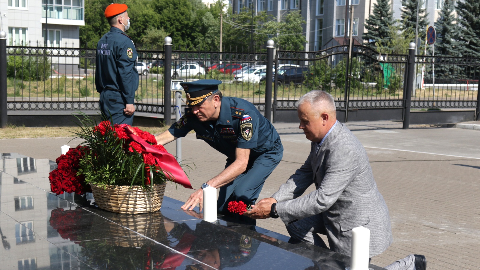 В завершение памятного мероприятия руководство главного управления и министерства, все присутствующие возложили цветы к подножию стелы и зажгли свечи.