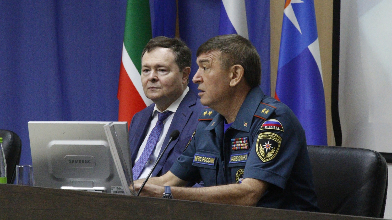 Рабочая встреча Главного федерального инспектора по Республике Татарстан Виктора Демидова с руководящим составом Главного управления МЧС России по Республике Татарстан проходила в рамках подготовки к обеспечению безопасности проведения в Казани I Игр стран СНГ.