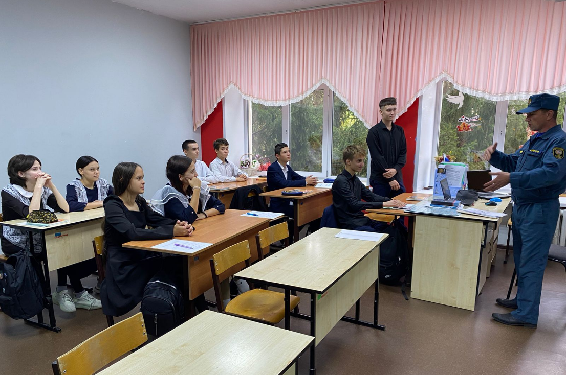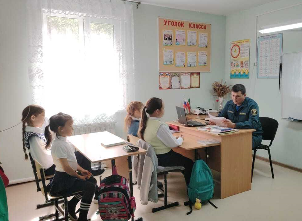 В Нижнекамском районе начальник отдельного поста по охране села Нижнее Бишево Юдин Альберт встретился со старшеклассниками Кадыровской школы, где особое внимание уделил сезонным рискам осеннего периода.