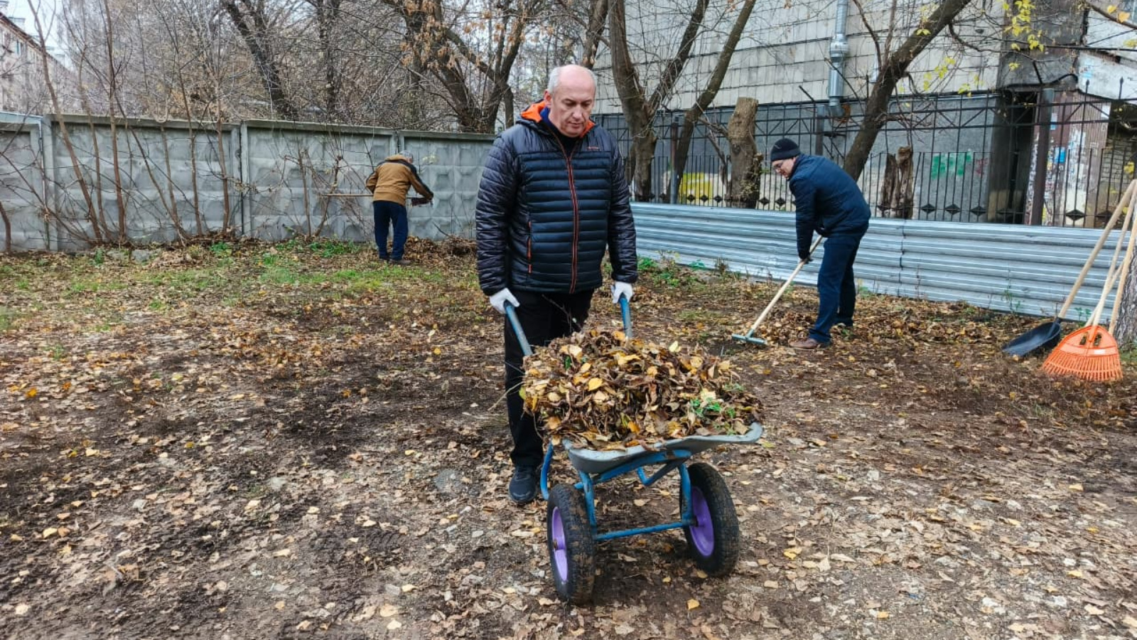 Весь личный состав центрального аппарата Министерства по делам ГО и ЧС РТ и подведомственных учреждений вышел на сегодня на субботник. Совместными усилиями мужчины, вооружившись граблями, мётлами и лопатами, убрали прилегающую территорию от мусора и листвы.