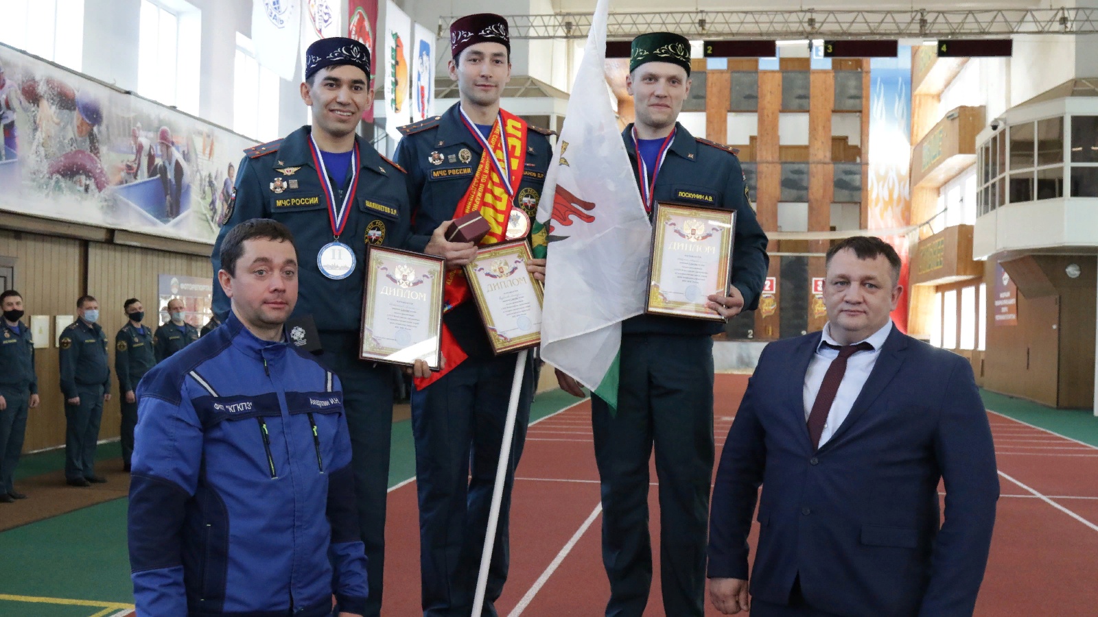 Спортчыларны югары дәрәҗәдә оештырганнары һәм әзерләгәннәре өчен Россия гадәттән тыш хәлләр министрлыгының махсус янгын сүндерү идарәсе җыелма командасының баш тренеры Олег Романычев махсус грамота белән бүләкләнде.