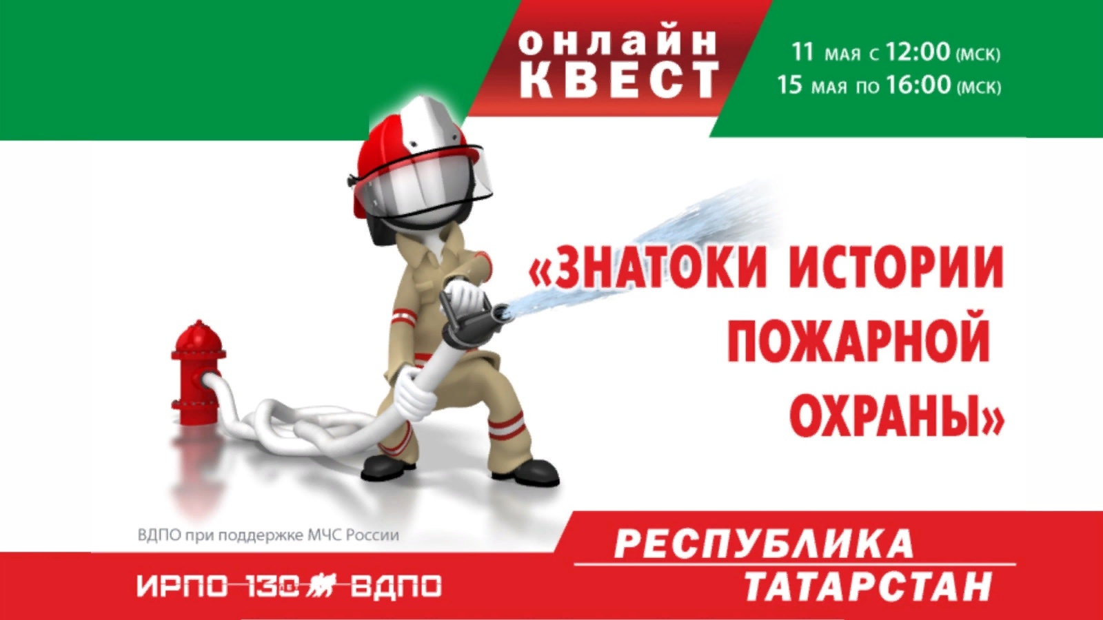 Россия ГТХМ ярдәме белән вдпо.рф порталында Бөтенроссия ирекле янгын җәмгыяте 130 еллыгына багышланган Бөтенроссия конкурсы үткәрелә. Онлайн-квестта шәхси яки команда форматында (2-5 кеше) яшенә һәм регионына карамастан, теләгән һәркем катнаша ала.