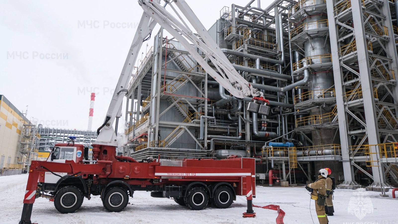 Татарстан Республикасы буенча шартнамә бүлекчәләре идарәсенең Түбән Кама филиалы янгынга каршы федераль хезмәт отрядының шәхси составы «ТАНЕКО» АҖ нефть химиясе производствосында янгын-тактик өйрәнүләр үткәрде. Ният буенча, штаттан тыш вәзгыять нәтиҗәсендә реактор блогында нефть түгелгән. 35 метр биеклектәге янгын булды.