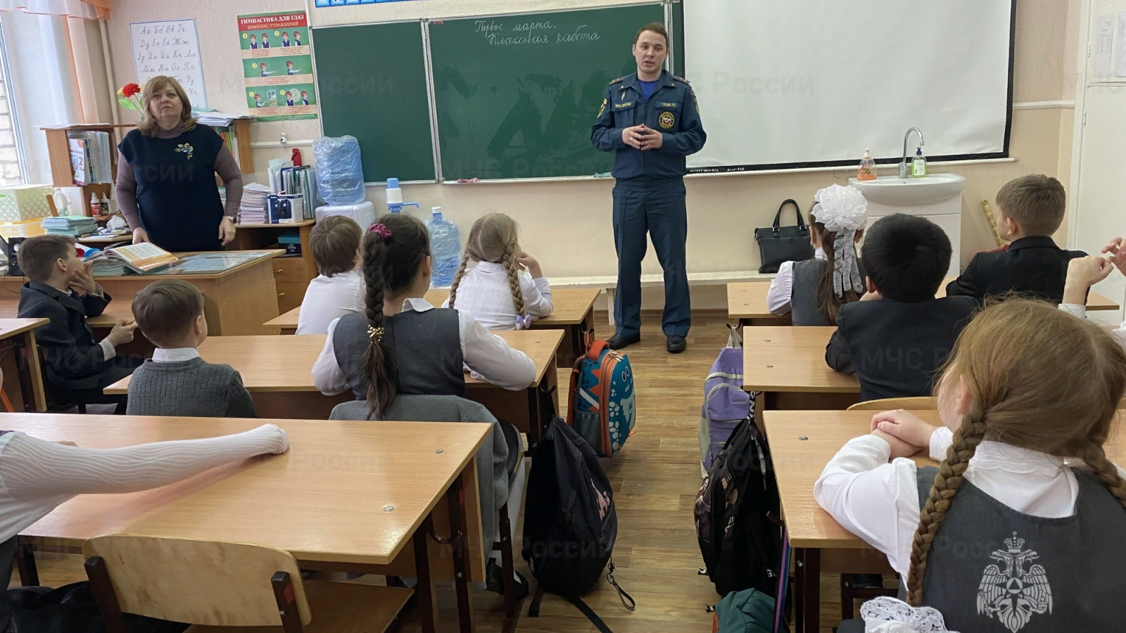 Дәрес вакытында өлкән инспектор Роман Сизов мәктәп укучыларына ут һәм янгын куркынычлы предметлар белән сак эш итү күнекмәләрен, янгын сүндерү чараларын дөрес куллану күнекмәләрен сеңдерүгә аерым игътибар бирә.