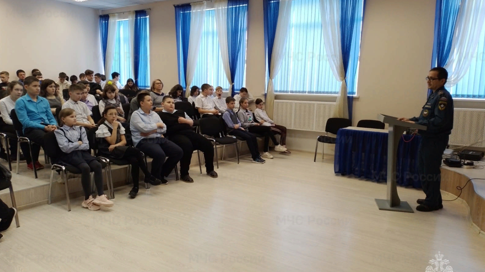 Дәрес кысаларында чараны оештыручылар укучыларга торак һәм җәмәгать биналарында янгын куркынычсызлыгы кагыйдәләрен, янгын вакытында үз-үзләрен тоту кагыйдәләрен, беренчел янгын сүндерү чаралары белән эш итү кагыйдәләрен аңлаттылар, шулай ук ни өчен өйдә автоном янгын хәбәрчеләрен урнаштырырга кирәклеген аңлаттылар.